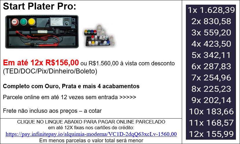 1 | Manual em português completo e extremamente didático, com aprendizado por cores e termos de fácil entendimento, mesmo por pessoas que nunca tiveram contato com galvanoplastia ou metalurgia |